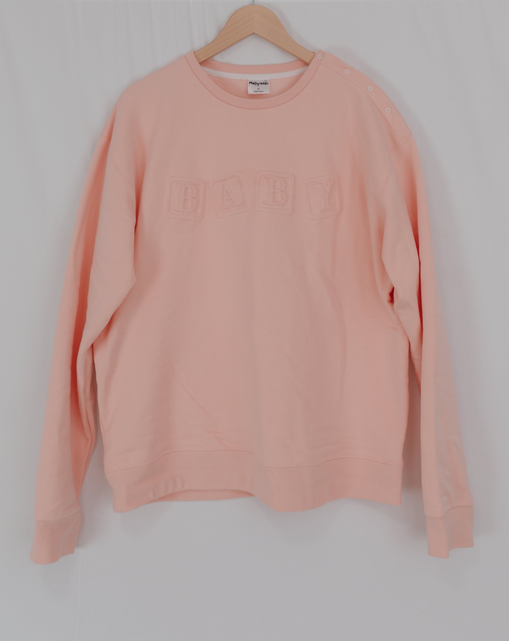 Meet The Lola – our newest cosy sweatshirt with all the sweet, baby-inspired details you’ll love! This soft pastel pink sweatshirt features a 3D "BABY" with adorable building blocks on the front that’s just too cute to resist. With shoulder snaps for easy changes, it’s perfect for even the wriggliest of babies!