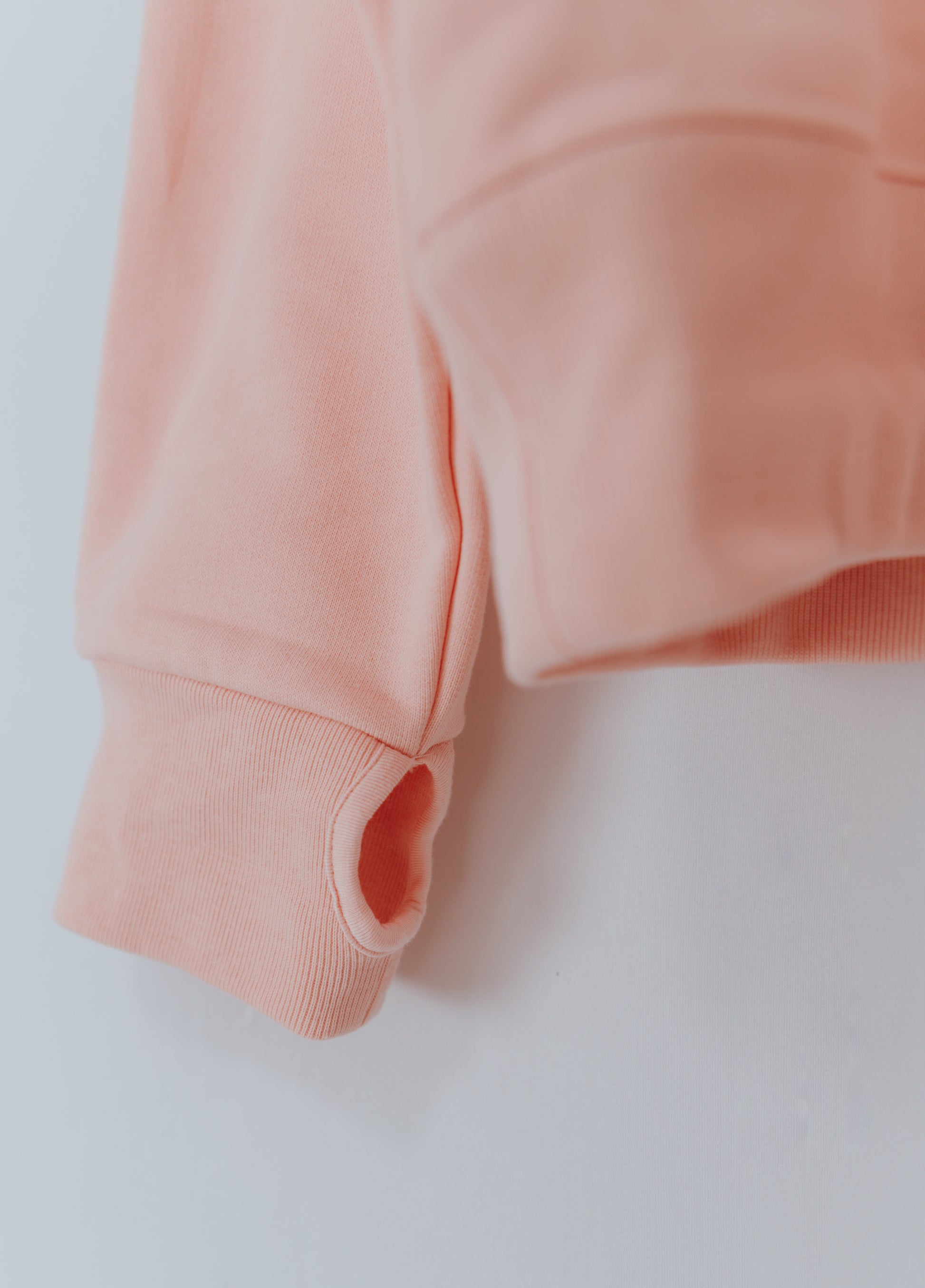 The Lola has thumb holes for that extra cozy touch, and it’s the perfect length to give a cheeky little peek of your diaper. The inside lining is super soft, so it feels like a warm cuddle every time you wear it. Whether you're playing, lounging, this sweatshirt wraps you in comfort and all the baby feels.